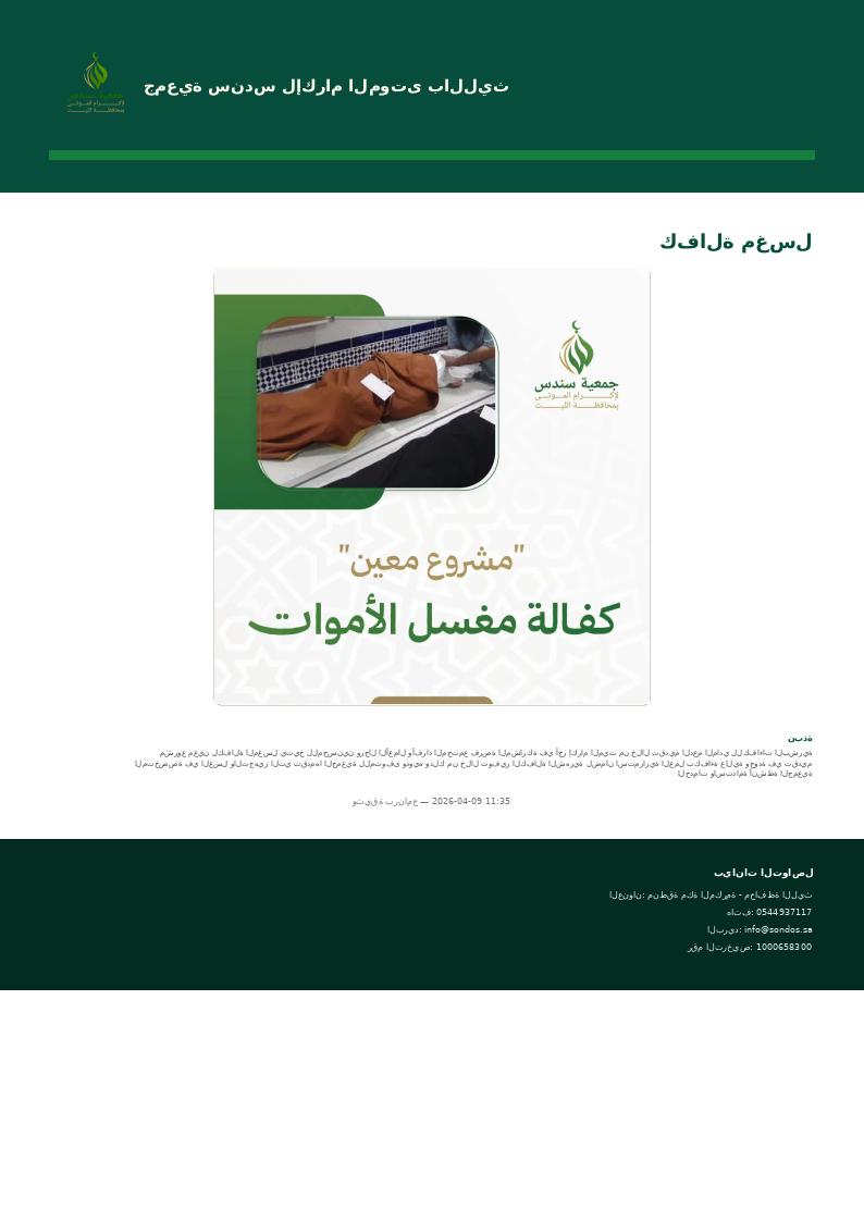 مشروع معين لكفالة المغسل يتيح للمحسنين ورجال الأعمال وأفراد المجتمع فرصة المشاركة في أجر إكرام الميت من خلال تقديم الدعم المادي للكفاءات البشرية المتخصصة في الغسل والتجهيز التي تقدمها الجمعية للمتوفى وذويه وذلك من خلال توفير الكفالة الشهرية لضمان استمرارية العمل بكفاءة عالية وجودة في تقديم الخدمات واستدامة أنشطة الجمعية