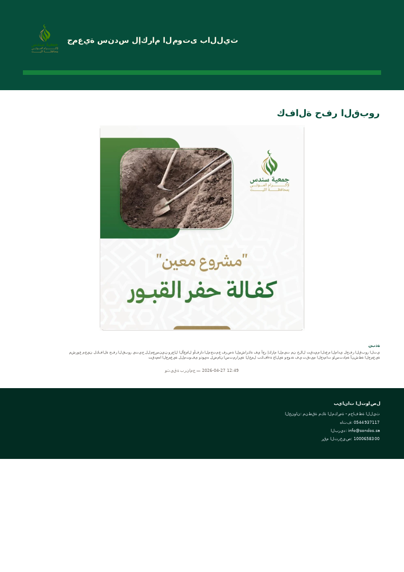 مشروع معين لكفالة حفر القبور يتيح للمحسنين ورجال الأعمال وأفراد المجتمع فرصة المشاركة في أجر إكرام الميت من خلال تقديم الدعم المادي لحفر القبور التي تقدمها الجمعية للمتوفى وذويه لضمان استمرارية العمل بكفاءة عالية وجودة في تقديم الخدمات واستدامة أنشطة الجمعية
